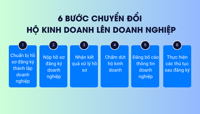 Hoàn thành 6 bước trên giúp hộ kinh doanh chuyển đổi lên doanh nghiệp một cách hợp pháp, minh bạch và nhanh chóng. Chủ doanh nghiệp nên thực hiện đúng quy trình để tránh sai sót và đảm bảo doanh nghiệp mới hoạt động ổn định ngay sau khi đăng ký.