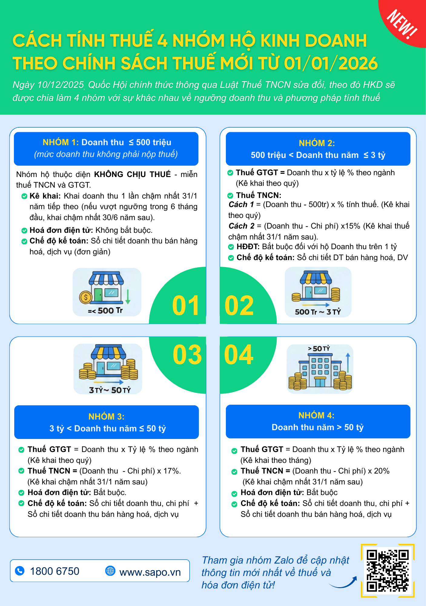 Từ 01/01/2026, hộ kinh doanh cần xác định đúng nhóm doanh thu để áp dụng đúng cách tính thuế, hình thức kê khai và chế độ hóa đơn. Nắm rõ quy định ngay từ đầu sẽ giúp tránh sai sót, không bị truy thu và yên tâm kinh doanh lâu dài. Việc chia 4 nhóm không nhằm “đánh thuế nặng hơn”, mà để đánh đúng – thu đúng – theo quy mô thực tế của từng hộ kinh doanh.