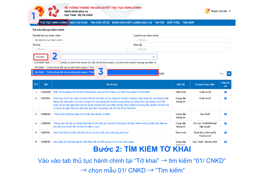 Tại giao diện tờ khai mẫu 01/CNKD, bạn cần: