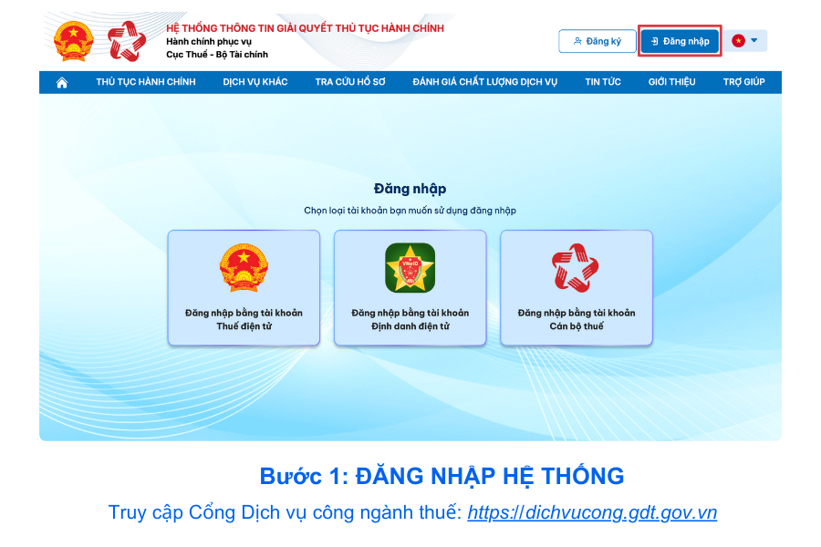 Toàn bộ quy trình thực hiện tại: https://dichvucong.gdt.gov.vn