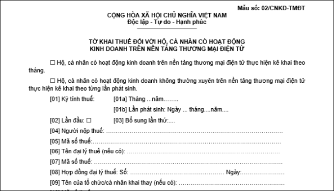 Dưới đây là bảng hướng dẫn chi tiết cách ghi các chỉ tiêu quan trọng trên mẫu 02/CNKD-TMĐT ( tờ khai thuế đối với hộ, cá nhân có hoạt động kinh doanh trên nền tảng thương mại điện tử), kèm các lưu ý bắt buộc phải nhớ để tránh sai sót và bị xử phạt: