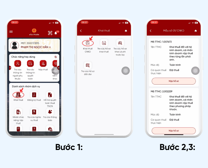 1. Các bước kê khai tờ khai 01/CNKD trên eTax Mobile