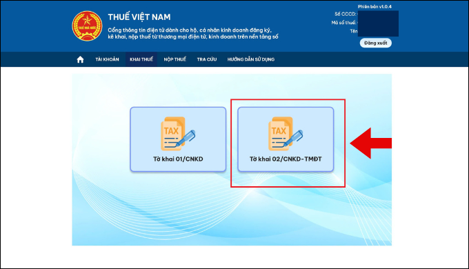 Bước 3: Chọn tờ khai 02/CNKD-TMĐT