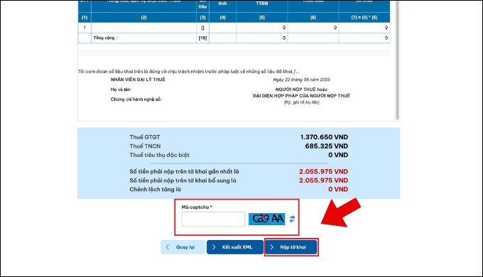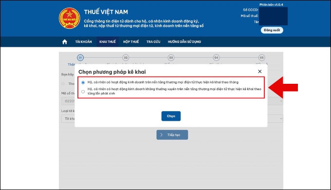 Bước 5: Lựa chọn tháng kê khai và loại tờ khai