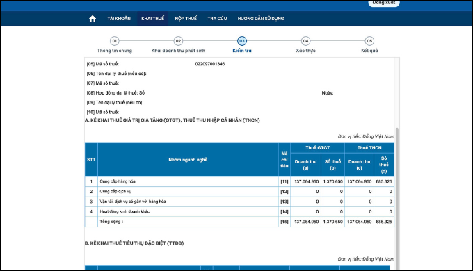 Bước 7: Kiểm tra lại các thông tin đã điền xem đã chính xác chưa