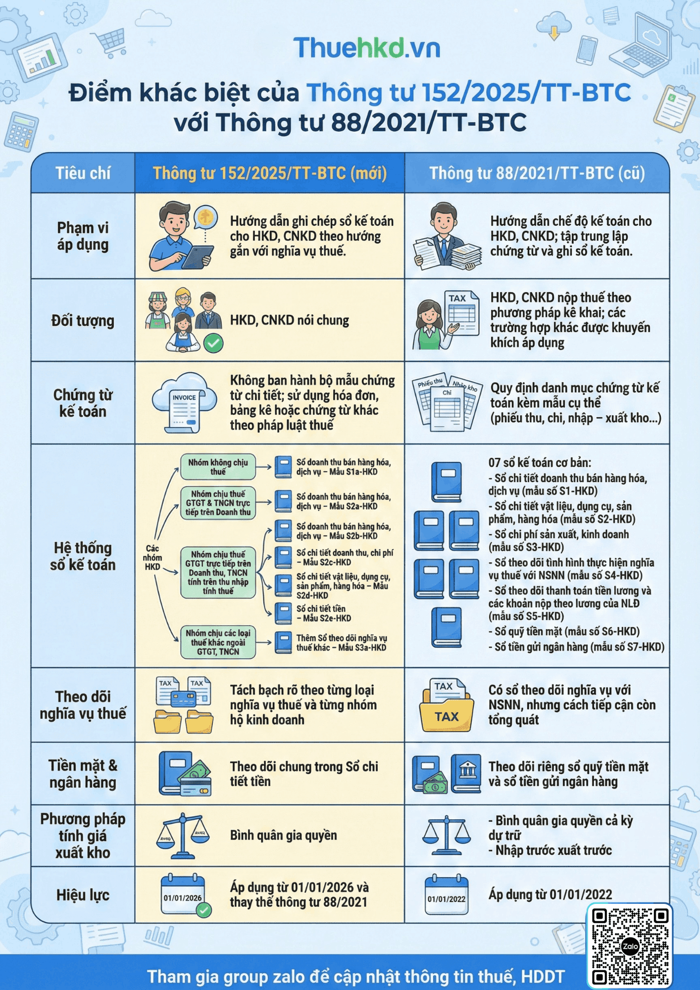 Ngày 31/12/2025, Bộ Tài chính đã chính thức ban hành Thông tư 152/2025/TT-BTC hướng dẫn chế độ kế toán áp dụng cho hộ kinh doanh, cá nhân kinh doanh, có hiệu lực từ ngày 01/01/2026. Infographic dưới đây sẽ làm rõ những điểm khác biệt nổi bật, giúp người bán hiểu rõ những nghĩa vụ mới cần thực hiện.