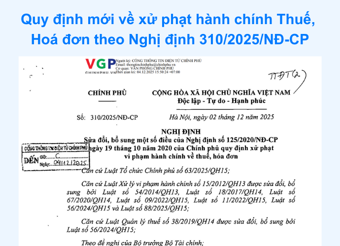 Nghị định 310/2025/NĐ-CP (hiệu lực từ 16/01/2026) đã cập nhật, sửa đổi các quy định xử phạt vi phạm hành chính về thuế và hóa đơn, trong đó làm rõ mức phạt đối với hành vi lập hóa đơn không đúng thời điểm và không lập hóa đơn. Việc nắm rõ các quy định này giúp tổ chức, cá nhân và hộ kinh doanh chủ động tuân thủ, hạn chế rủi ro bị xử phạt trong quá trình kinh doanh.