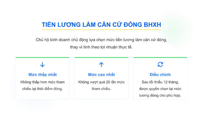 Vì thu nhập kinh doanh thường không cố định, chủ hộ được tự chọn mức tiền lương làm căn cứ đóng BHXH trong khung quy định: