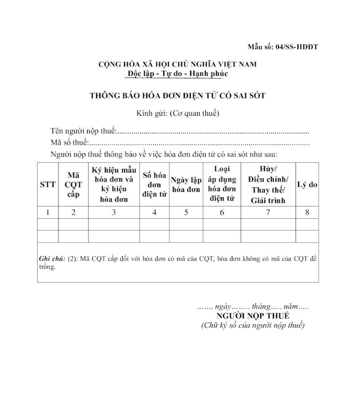 → Chỉ nộp thông báo sai sót mẫu 04/SS-HĐĐT lên cơ quan thuế.
